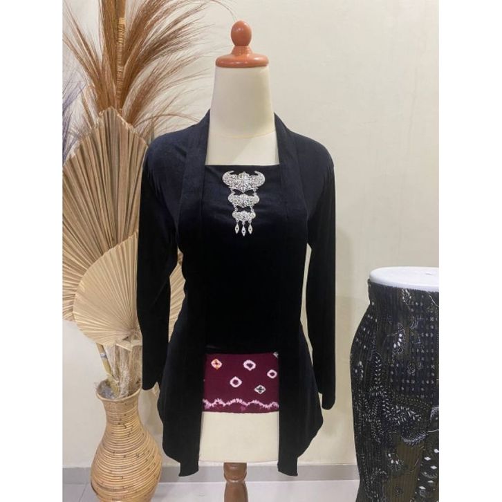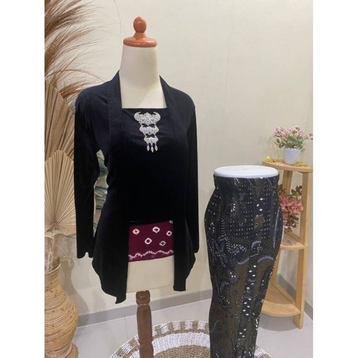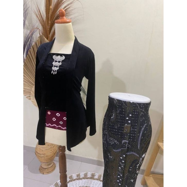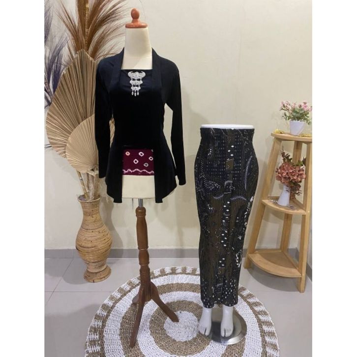 Kebaya Bludru 1 Set, Hitam Kebaya Kutubaru Bludru + Rok Plisket / Motif Durma hitam