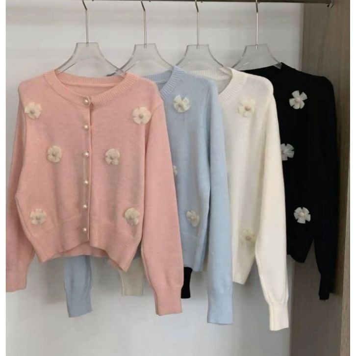 Cardigan Bunga Girly / Cardi Rajut Wol Kancing mutiara / Kardigan Import Premium / Bahan Tebal Musim Semi /