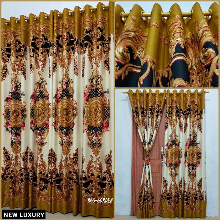 Promo termurah gorden / hordeng pintu smorking 12 ring SIZE 105 X 220 CM - LUXURY g00ld Keren