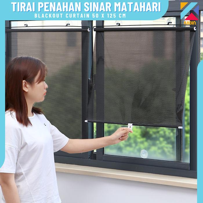 Promo Tirai Gorden Gulung Anti sinar matahari Roll Gorden Hordeng Tempel 50X125CM Hitam Curtain - Hitam 50X125 CM Elegan