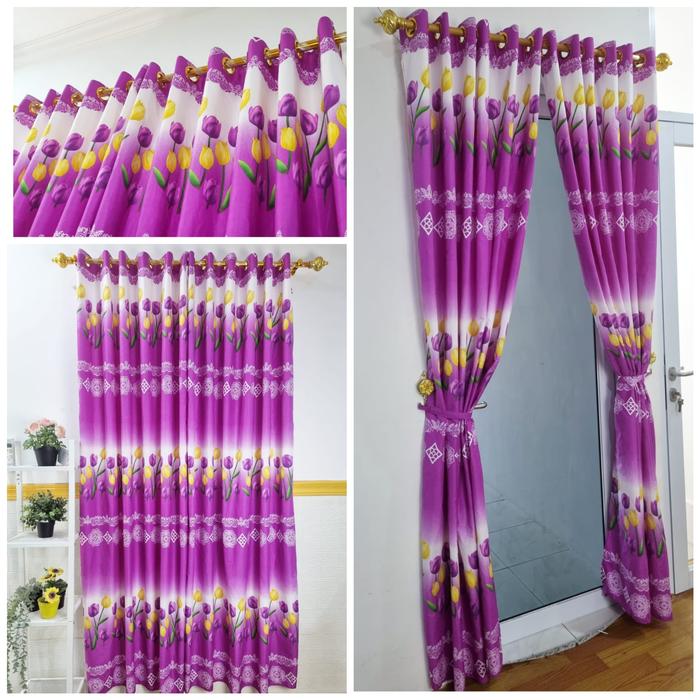 Terlaris BL HORDENG PINTU KAMAR - GORDEN RUANG TAMU - KORDEN MOTIF TULIP UNGU - RING12 TULIP UNGU B Keren