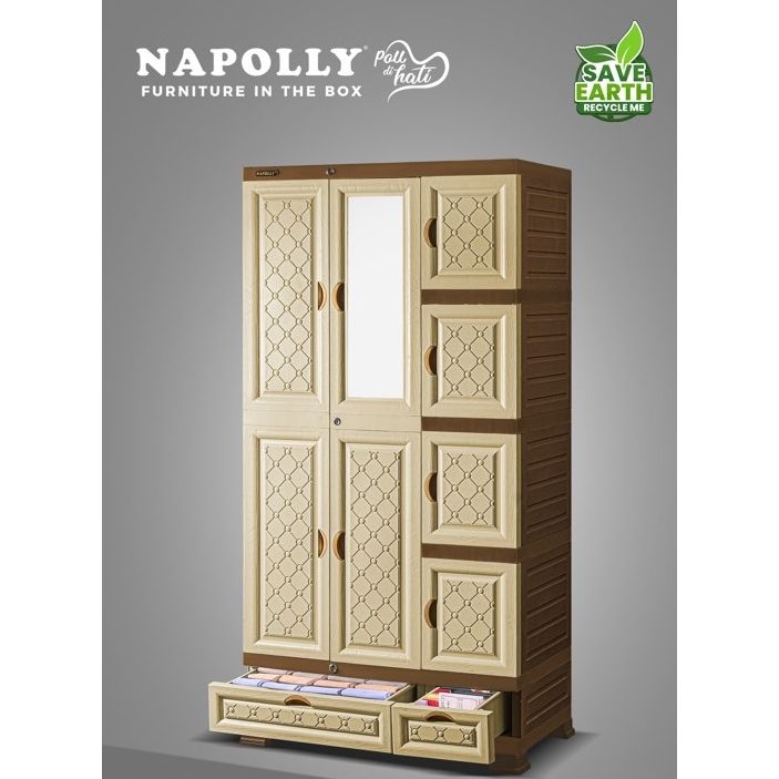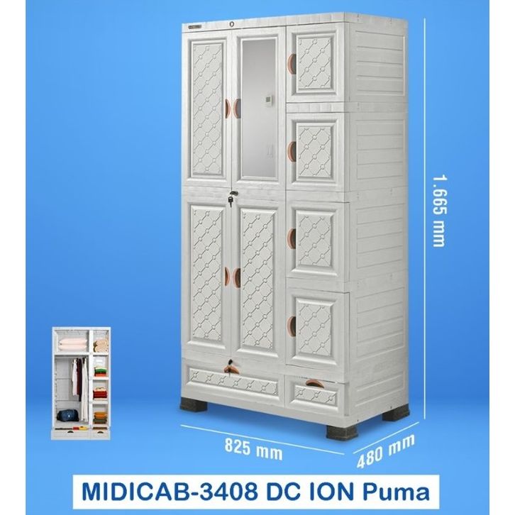 Lemari Pakaian Plastik NAPOLLY 3 PINTU JUMBO BESAR KACA CERMIN KUNCI PUTIH GADING KOKOH MIDICAB 3408