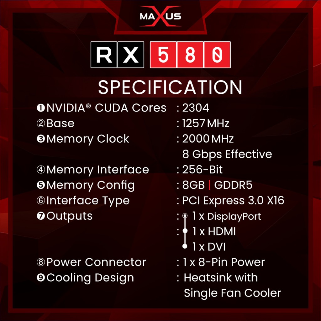 VGA MAXUS RX 580 8GB GDDR5 256BIT GARANSI RESMI
