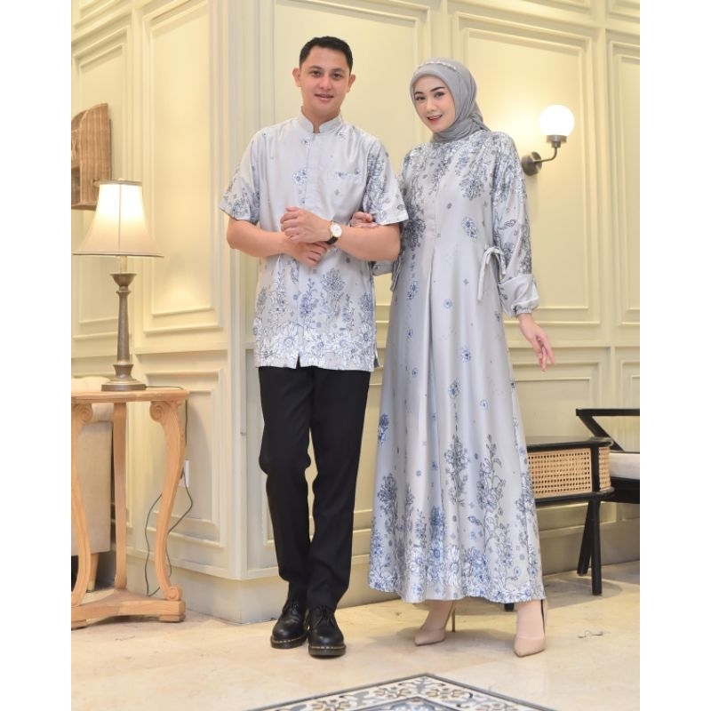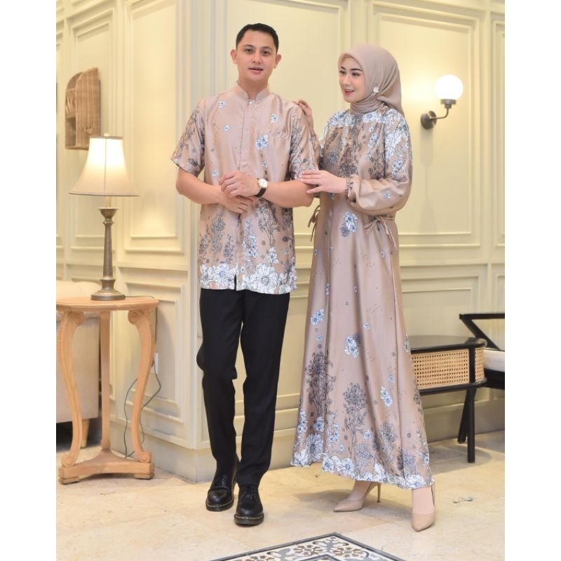 GAMIS COUPLE PASANGAN SILK PREMIUM | GAMIS MOTIF BUNGA MEWAH BESTSELLER | COUPLE KEMEJA DAN GAMIS LEBARAN