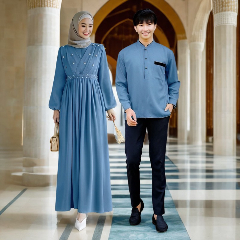 Realpict Baju Couple Koko Lengan Panjang / Set Couple Viral 3 Ukuran / Baju Pasangan Lebaran Muslim Fashion