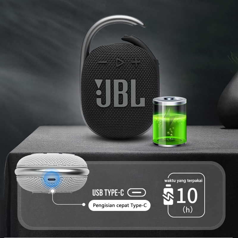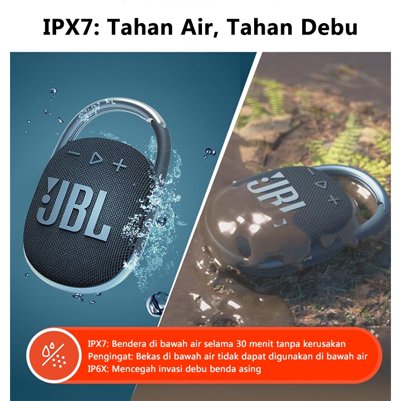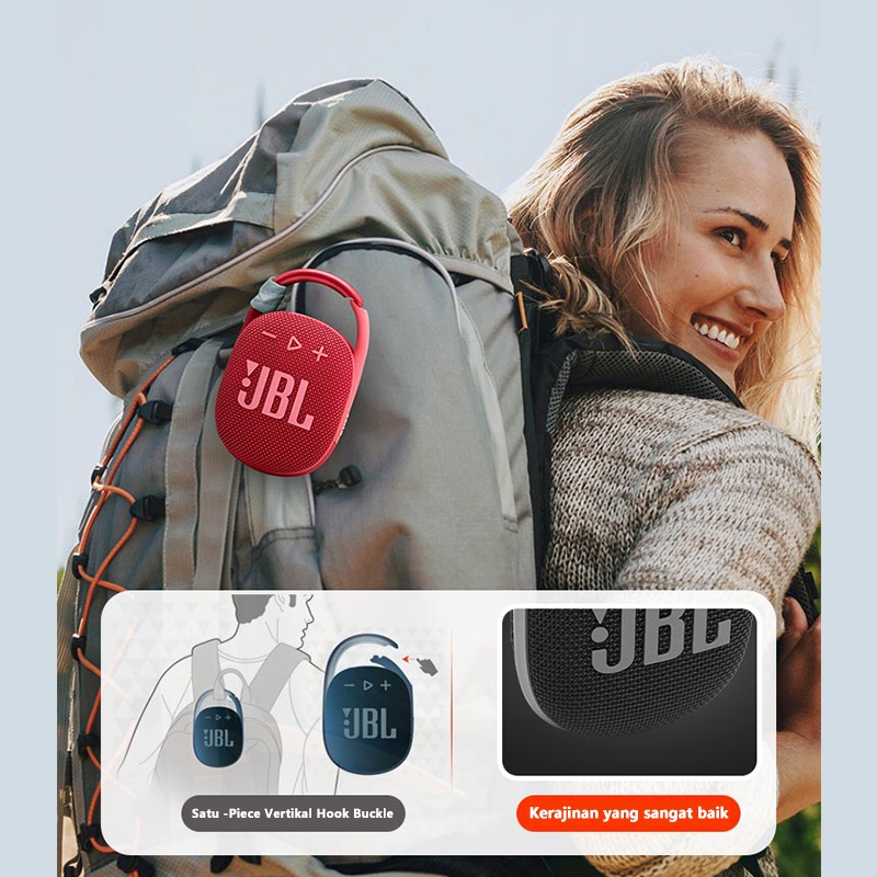 JBL Clip 4 Portable Speaker with Bluetooth, Built-in Battery, Waterproof and Dustproof Feature Sepiker Aktif Pull Bass