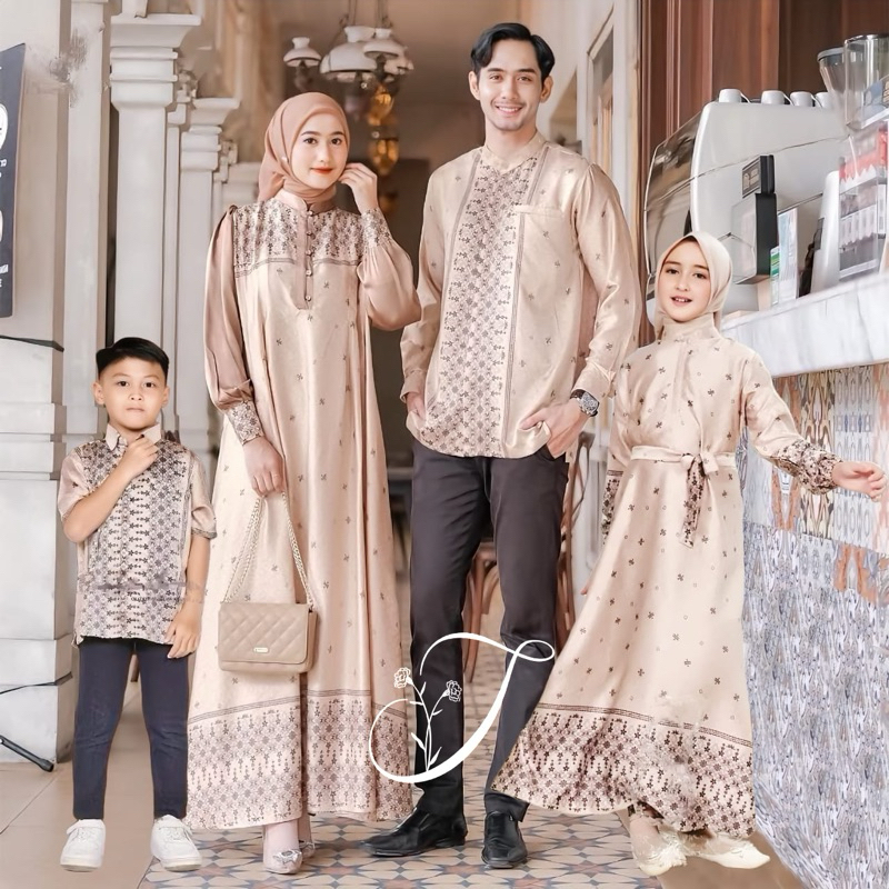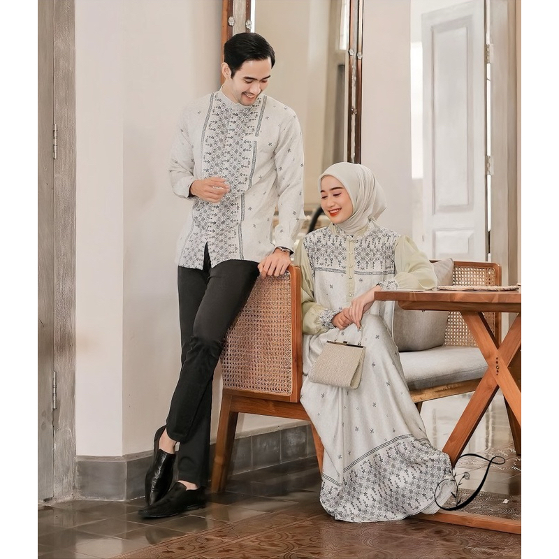 Baju Couple Kondangan Gamis Kekinian Set Koko Lengan Panjang Sarimbit Keluarga Muslim Terbaru