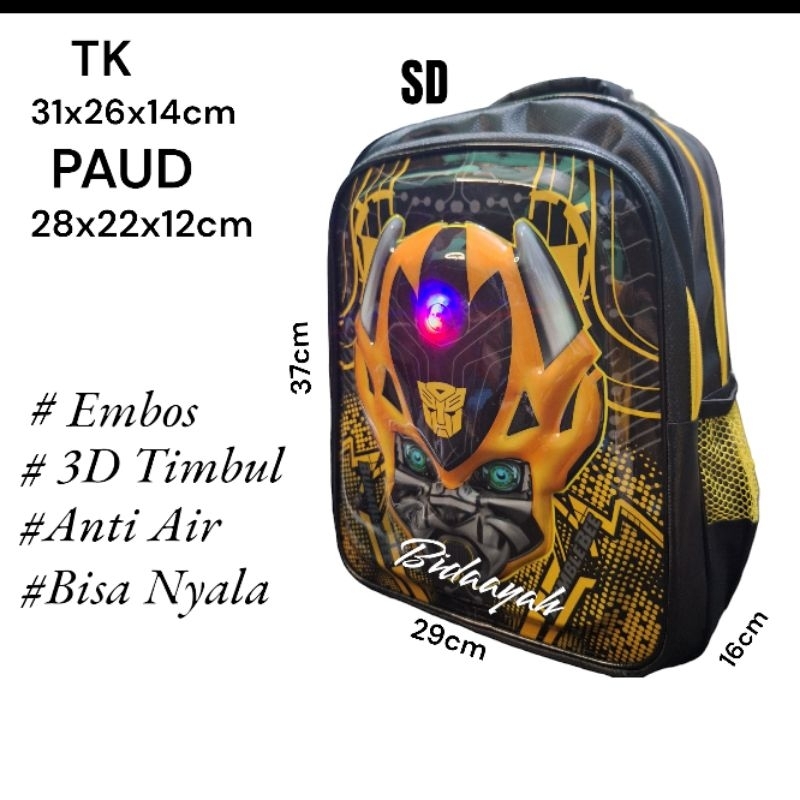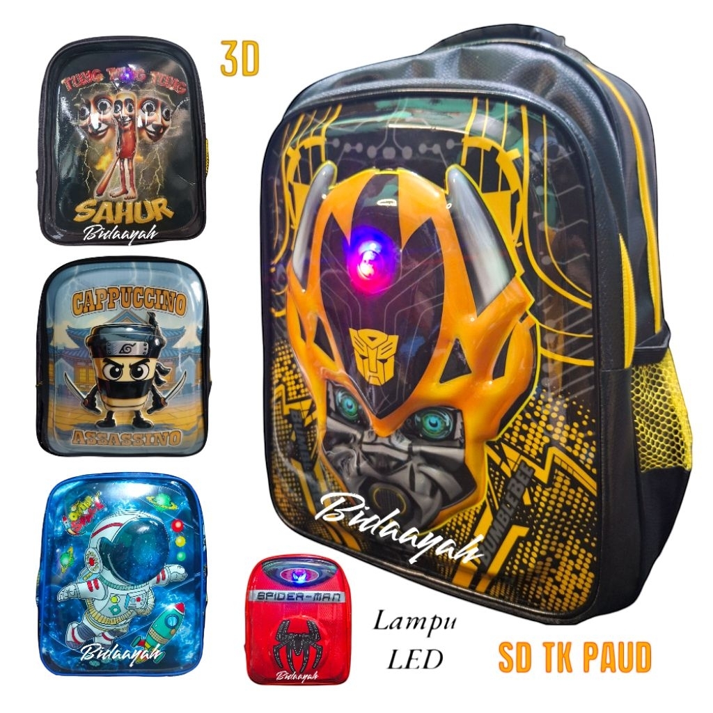 Bidaayah / BUMBLEBEE / TUNG TUNG TUNG TAS ANAK SEKOLAH 3D LED EMBOS TIMBUL UNTUK ANAK SD TK DAN PAUD ( DUA RUANG ) TUNG