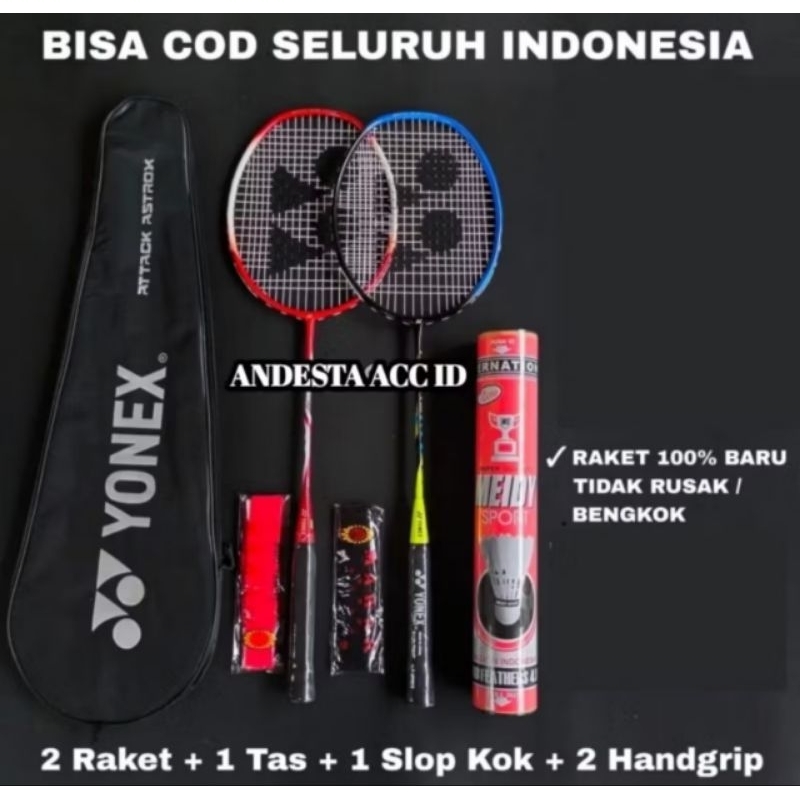 Raket Badminton Paket Lengkap Model Senyawa Terlaris 2 Raket 2 Grip 1 Tas 12 Kok Free Packing Kayu