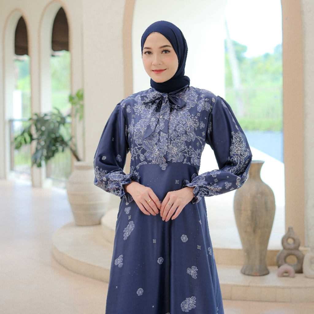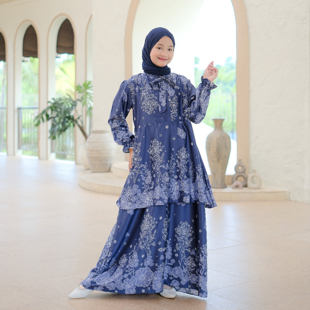 Baju Couple Keluarga Zoujah Navy By Baby Malika | Set Gamis Koko Terbaru Lebaran 2025