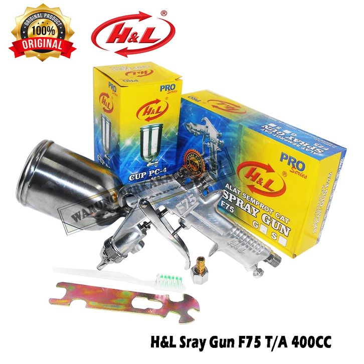 IWA SAGOLA - H&L F75 G S Spray Gun Spet Alat Semprot Cat Angin Kompresor Tabung Atas Cup 400Cc Full Set