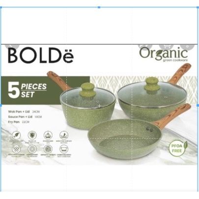 Bolde Panci Set Organic Green By BOLDe/ 5 pcs / 3 Jenis Panci / dengan 2 Tutup kaca