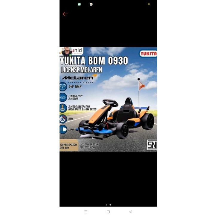 MAINAN MOBIL AKI SPORT F1 GOCAR ANAK YUKITA BDM 0930 LICENSED MCLAREN 24VOLT
