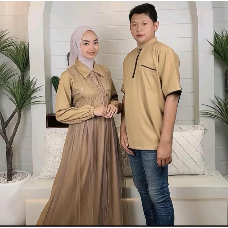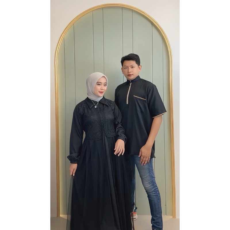 DANIA Dress Wanita dan Set Couple Terbaru Tiffani Twill Mix Brokat Mix Tille Premium Elegan Dress Hari Raya By Alizza Collection