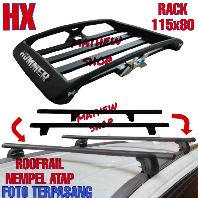 Paket Roofrack Atap Mobil Hummer Dan Crossbar Kaki Rack Jepit Roofrail All New Rush 2018 2019 2020 2021 2022 2023 2024 2