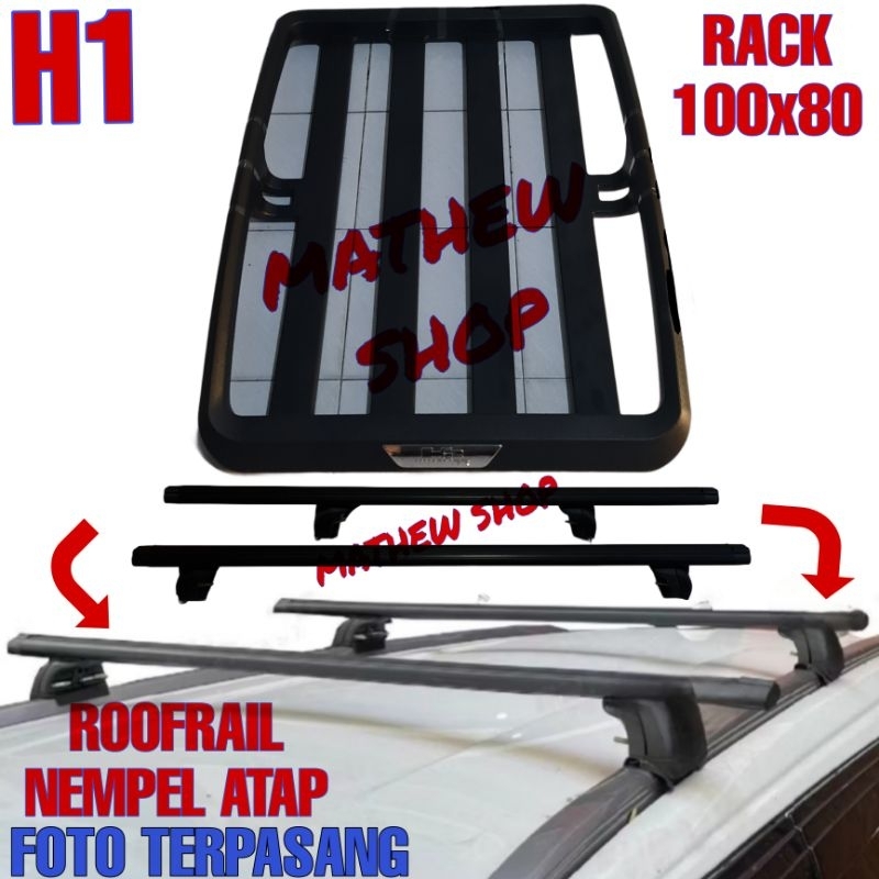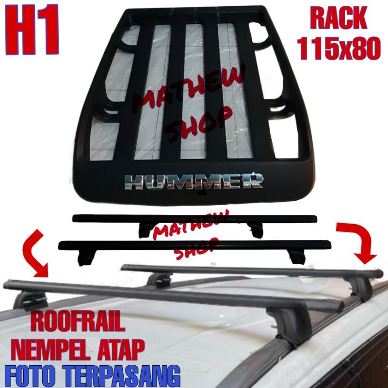 Paket Roofrack Atap Mobil Hummer Dan Crossbar Kaki Rack Jepit Roofrail All New Rush 2018 2019 2020 2021 2022 2023 2024 2