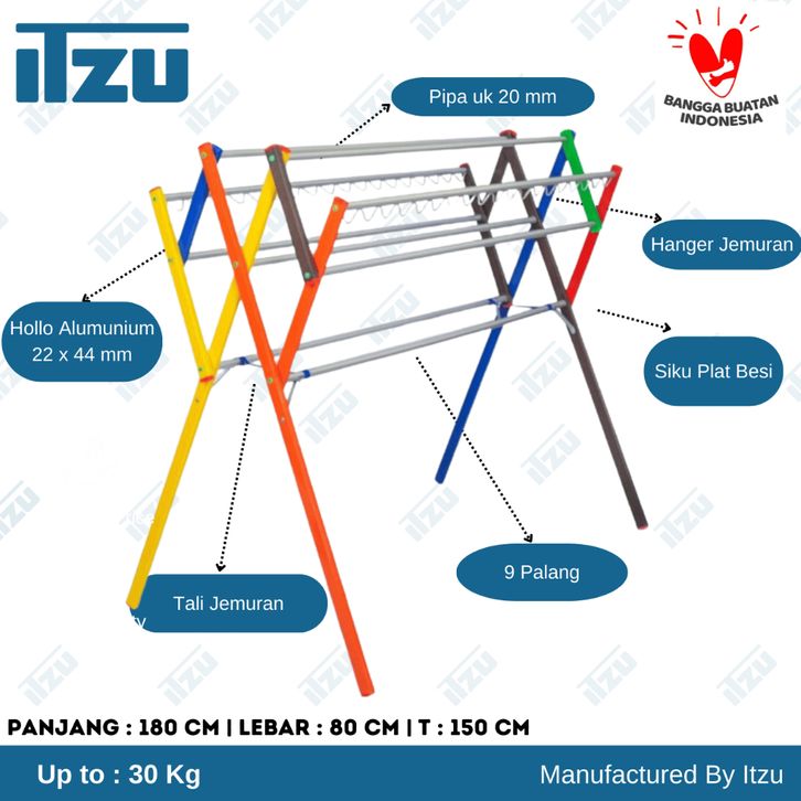 Jemuran Baju Alumunium Warna Besar 9 Palang