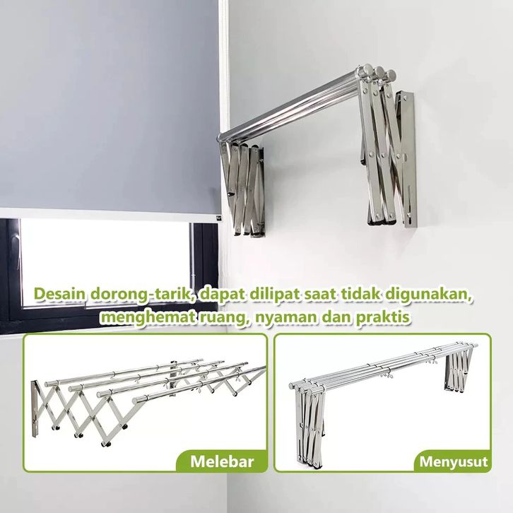 PACPIE Jemuran Dinding Stainless Steel / Jemuran Baju Tempel Dinding Lipat / Tarik Baja Tahan Karat