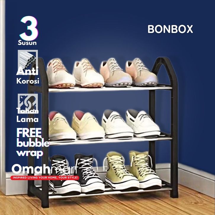 BONBOX Rak Sepatu Sandal Kecil Mini Minimalis Shoe Rack 3 Susun Besi Plastik