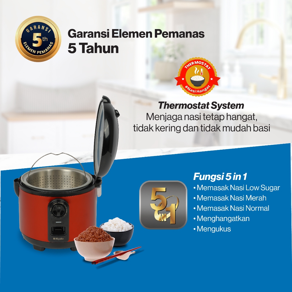 Mejikom Miyako 1.8 liter Anti Lengket Rice Cooker MCM721LST 3 in 1 Official Store