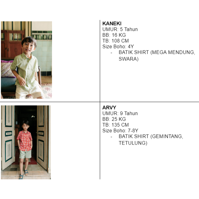 Bohopanna 1-14 Tahun Batik Shirt / Kemeja Batik Pendek Anak Bisa Couple CBKS