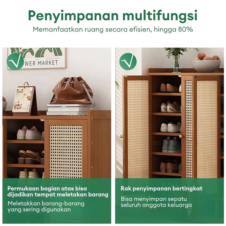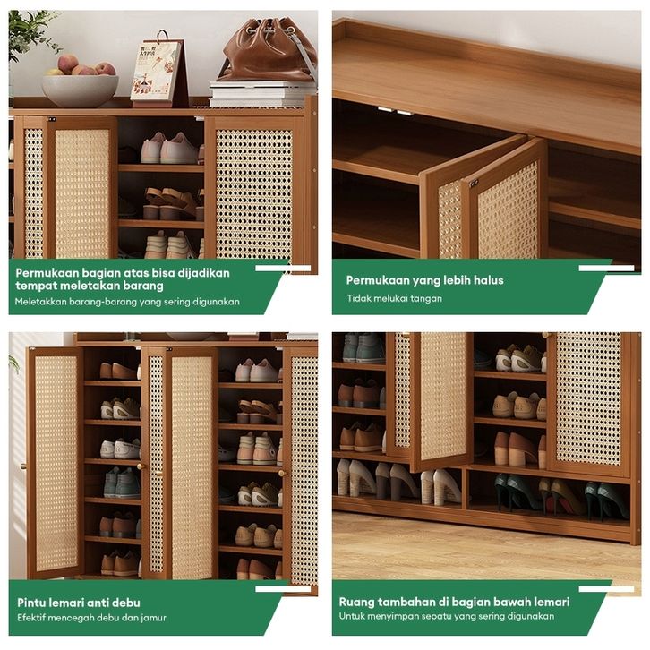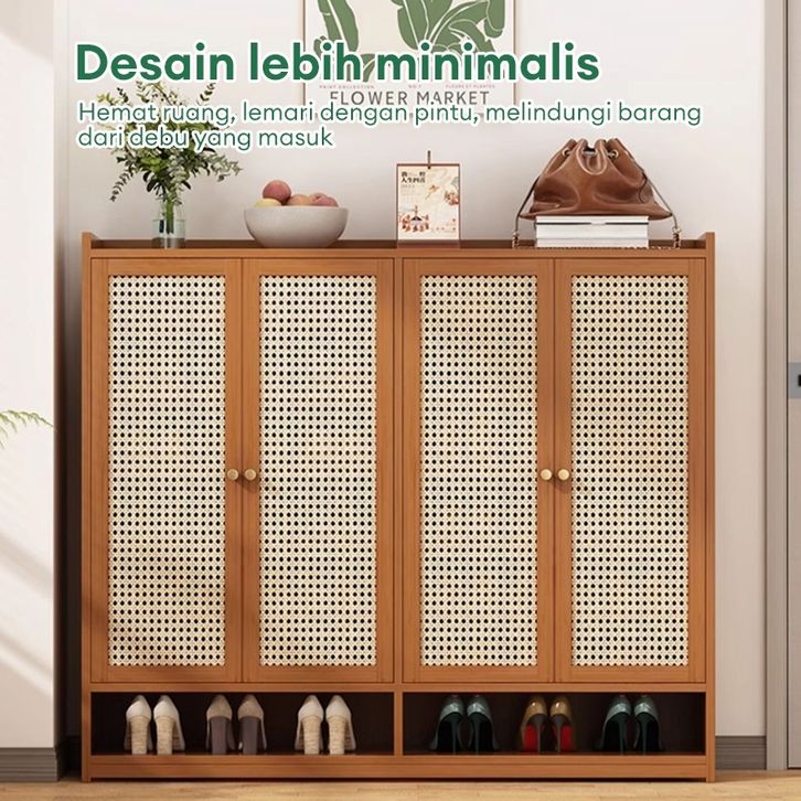 Lemari Sepatu Rotan Lemari Sepatu Kayu Minimalis Lemari Sepatu Tertutup Serbaguna Lemari Sepatu Jaring bernapas