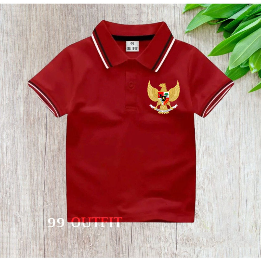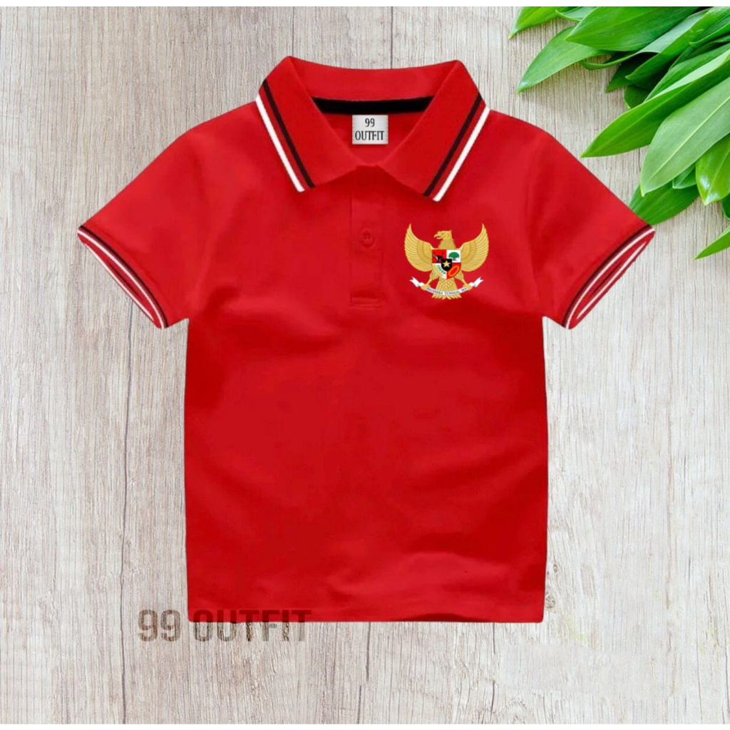 ATASAN WANGKY KERAH POLO ANAK UNISEX LOGO GARUDA INDONESIA MERAH PUTIH KATUN SANTAI
