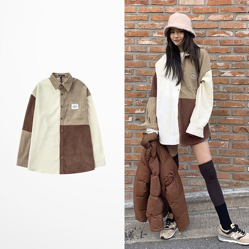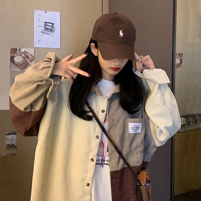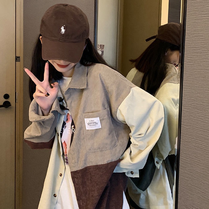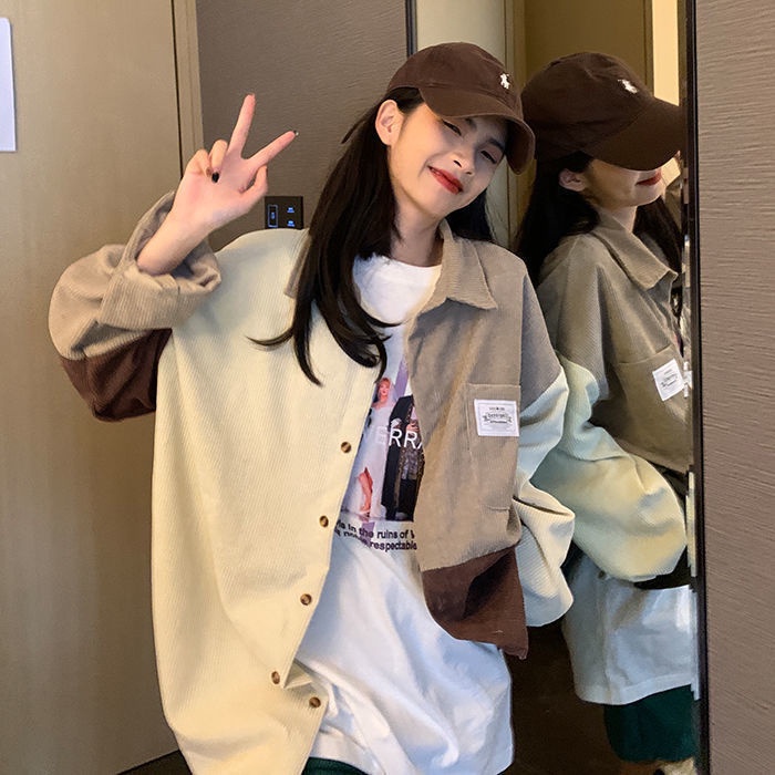KEMEJA KORDUROI GAYA KOREA DIJAHIT JAKET LENGAN PANJANG RETRO LONGGAR WANITA