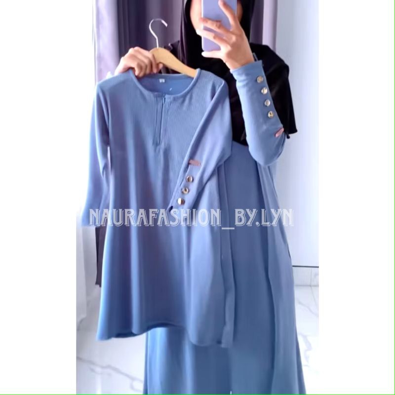 Abaya Madina Ibu dan anak usia 1-15 tahun bahan seline rib viscose adem lengan kancing kuning