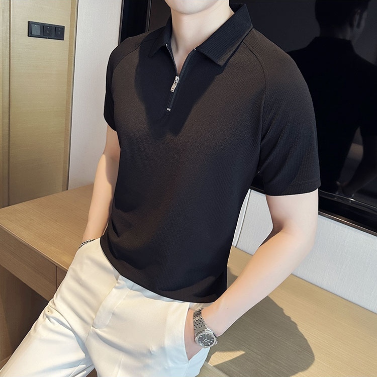 ZAFOS.ID - KAOS POLO SHIRT PRIA KNIT ZIPPER DEWASA SLIMFIT LENGAN PENDEK MOTIF POLOS PREMIUM TERBARU