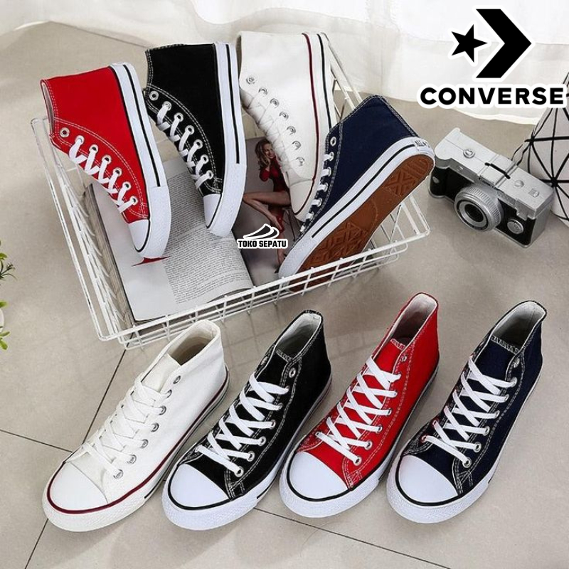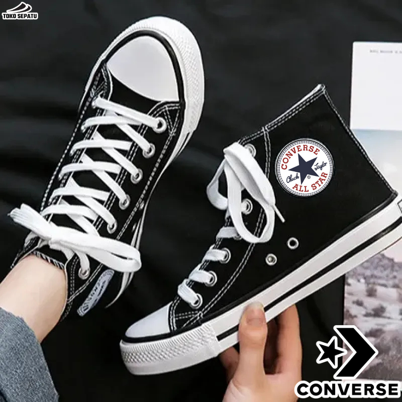 sepatu sekolah anak laki laki TERLARIS SEPATU CONVERSE ALL STAR HIGH BLACK WHITE SNEAKERS CONVERS ALLSTAR NB PREMIUM