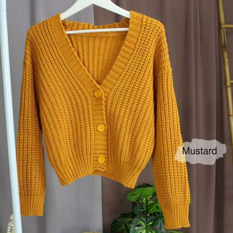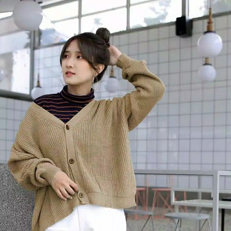 CARDIGAN CROP CROP KACING ELLENA BASIC OUTWEAR (7 GET) MIDI KARDIGAN RAJUT PREMIUM BASIC OUTER