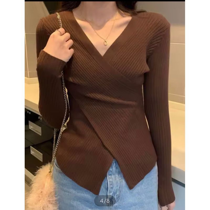 ELIZA KNIT SWEATER WANITA VNECK GAYA KOREA ALLMATCH PAKAIAN WANITA KNIT