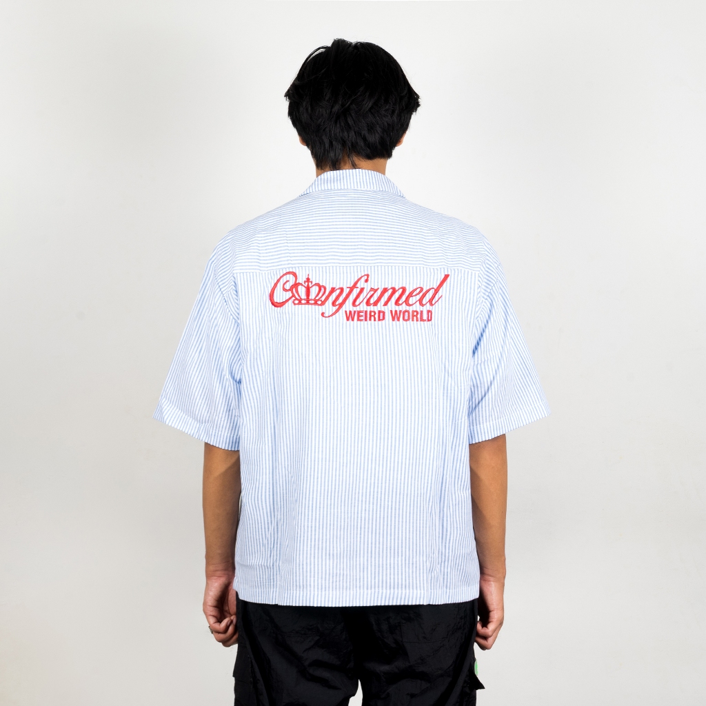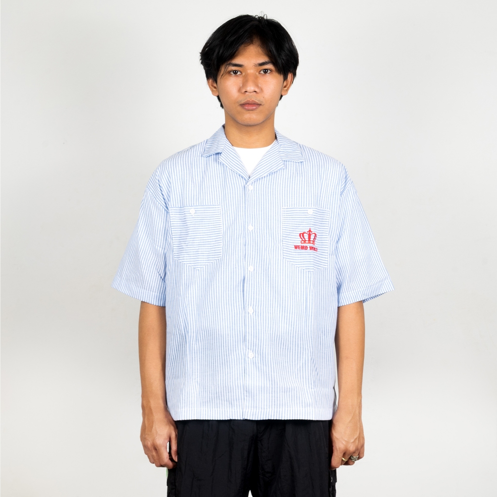 HLPD WEIRDWORLD KEMEJA BOXY LENGAN PENDEK SHIRT STRIPE SALUR - CAMUS NAVY