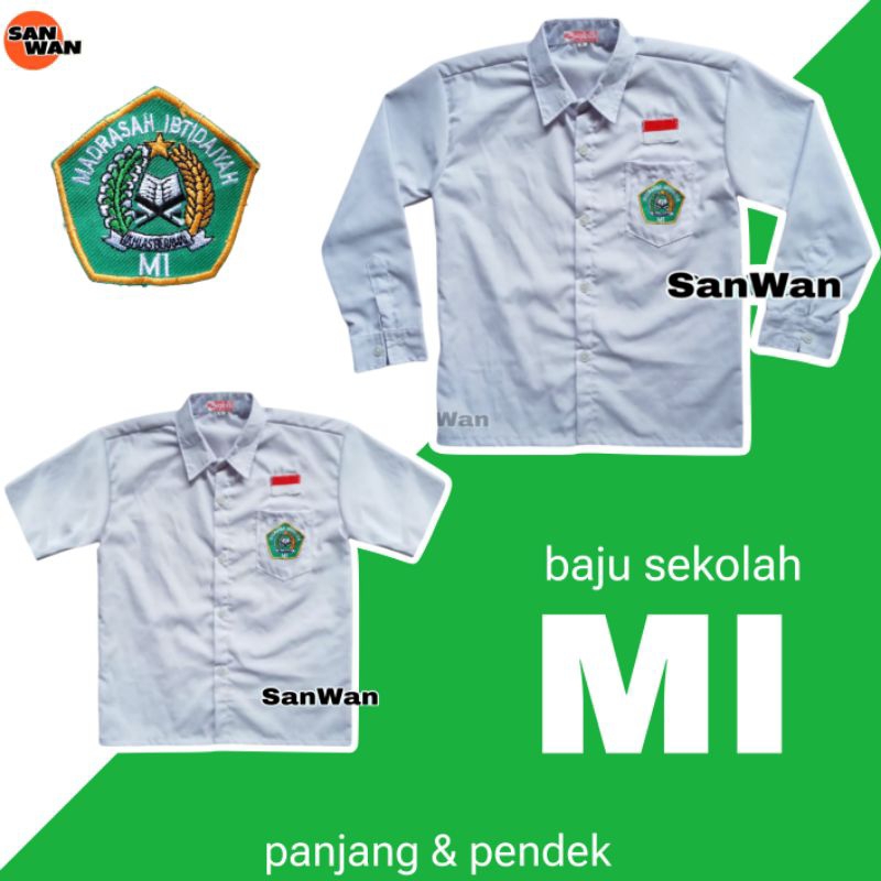 Baju Sekolah MI Madrasah Ibtidaiyah Putih Lengan Panjang Pendek