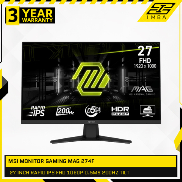 MSI MONITOR GAMING MAG 274F / MAG274F 27 INCH RAPID IPS FHD 1080P 0.5MS 200HZ TILT
