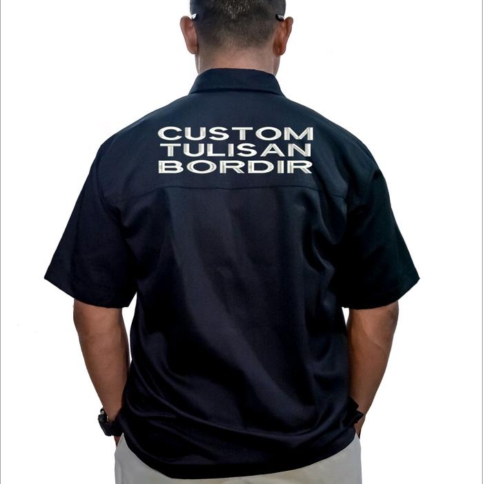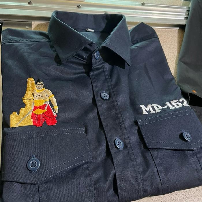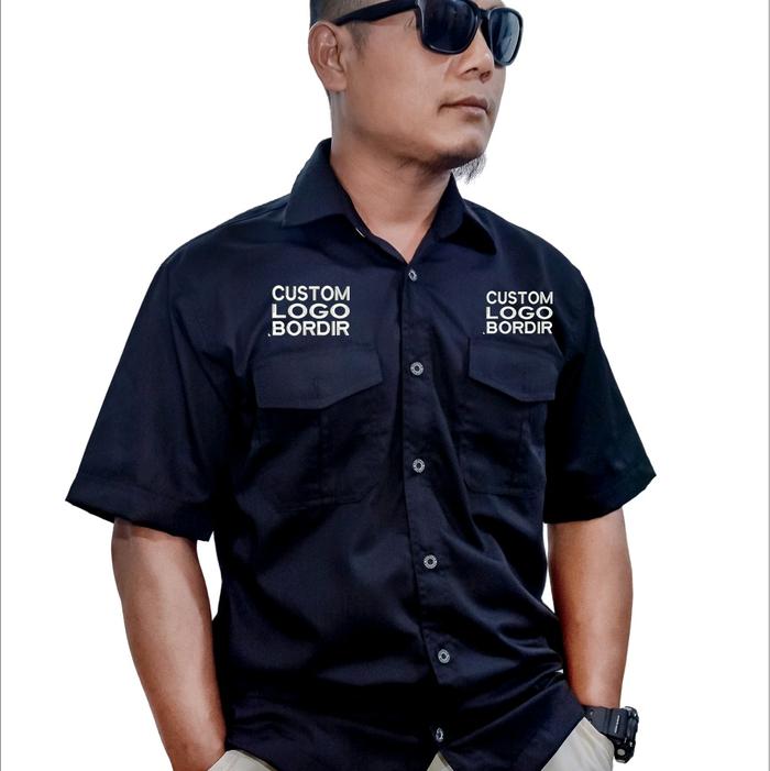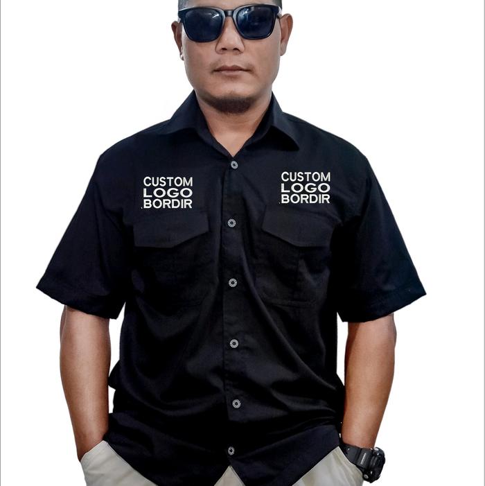 BORDIR KOMPUTER KEMEJA KERJA WORKSHIRT CUSTOM LOGO DAN BELAKANG TULISAN - hitam M