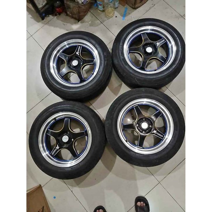 VELG MOBIL RACING SAmiliONG RING 15 LEBAR 6,5 lubbang BAUT PCD 4X100 + BRIDGESTONE 185 65 R15 PELEK BAN