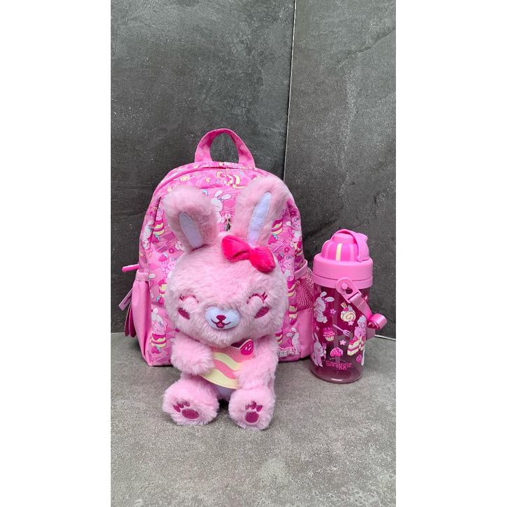 SMIGGLE OUT & ABOUT TEENY TINY BACKPACK DETACHABLE PLUSH & BOTTLE BUNNY PINK - SET TAS & BOTOL SMIGGLE