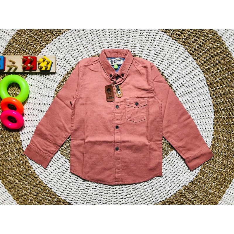 Kemeja lengan panjang anak laki-laki warna peach bahan katun UNIQLO premium usia 1-16tahun