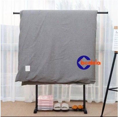 Rak Gantungan Baju Bedola Stand Hanger Double Rak Gantungan Pakaian Serbaguna Rak Baju dengan 4 Roda 2 Sisi