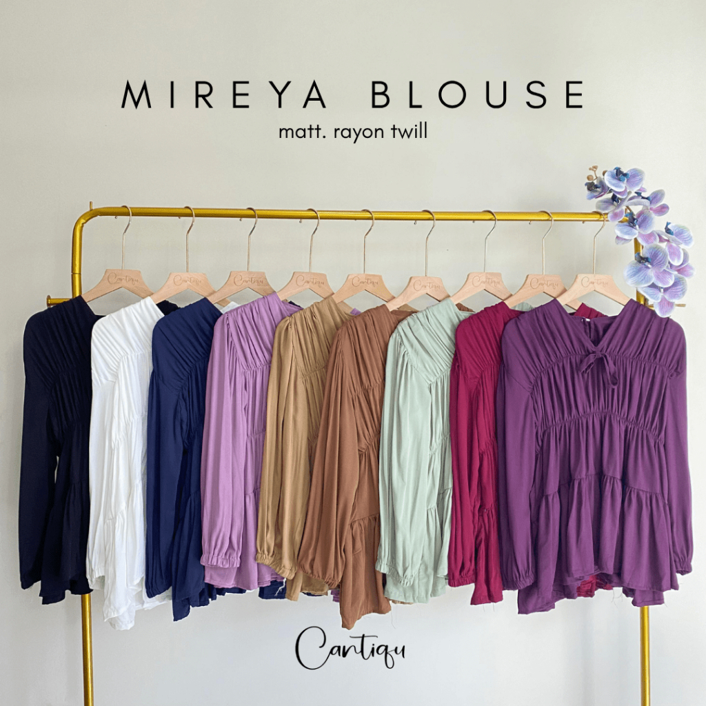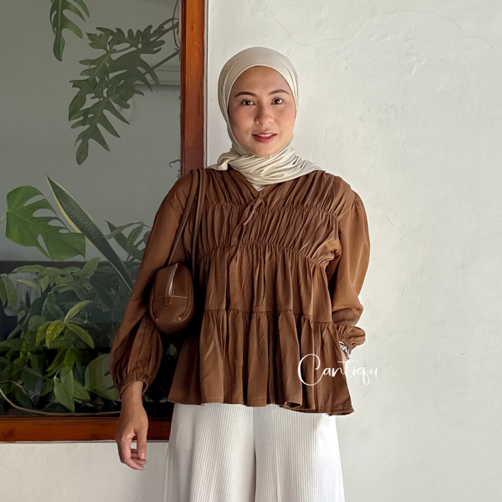 Cantiqu Mireya Blouse Kerut Rayon Atasan Wanita Polos Warna Lengan Panjang baju atasan wanita