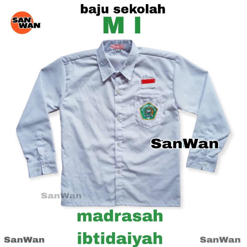 Baju Sekolah MI Madrasah Ibtidaiyah Putih Lengan Panjang