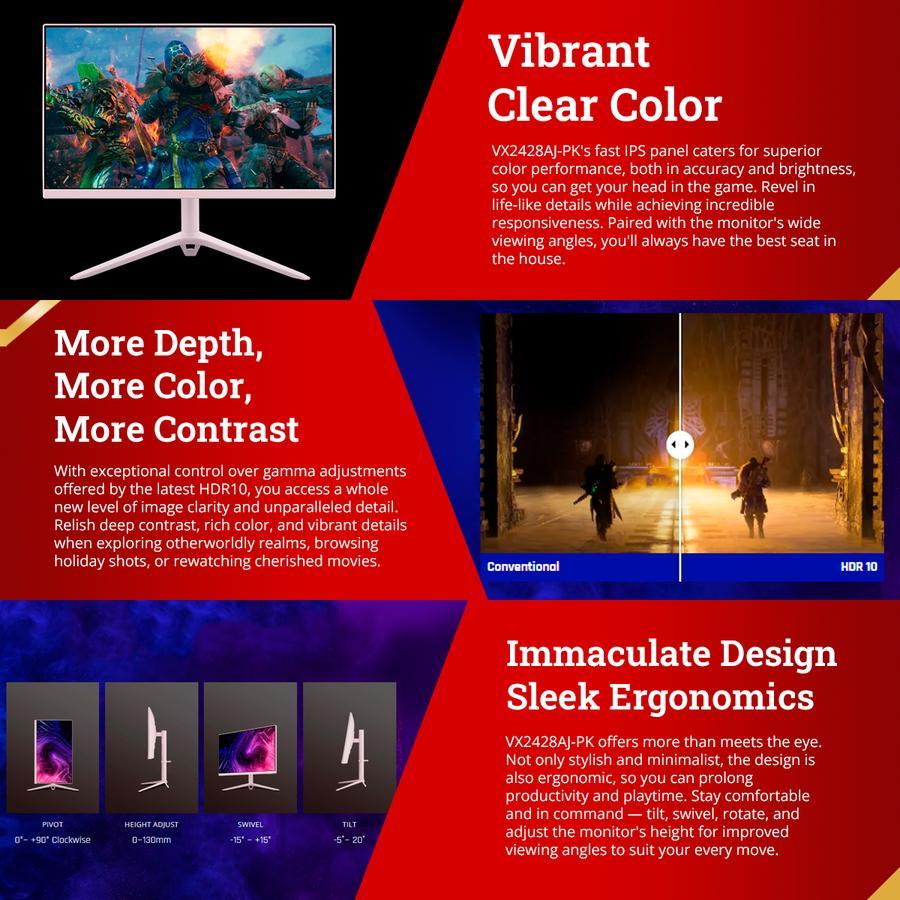 Monitor VX2428AJ-PK 24 Inch 1920x1080 IPS 240Hz Speaker Ergonomics PINK
