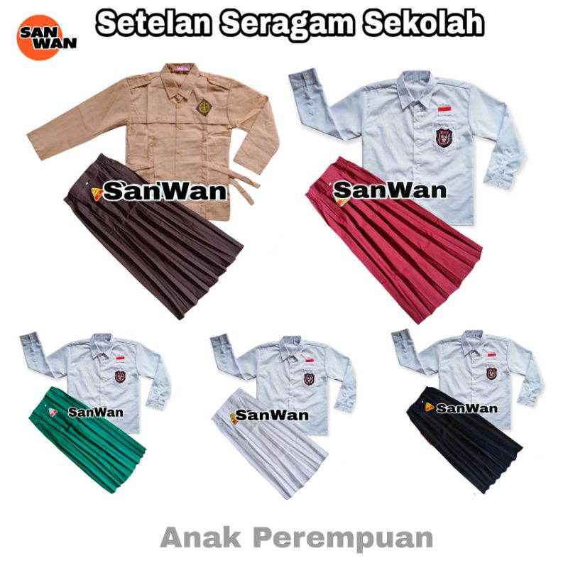 Setelan Seragam Sekolah Kelas 1- 6 SD Perempuan Baju Panjang Rok Panjang