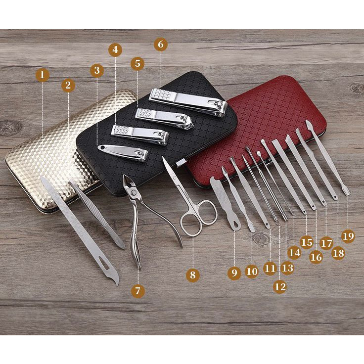Gunting Kuku Set 19 in 1 Stainless Original, Alat Menicure Pedicure Set, Alat Perawatan Kuku, Nail Art Set Lengkap, Alat