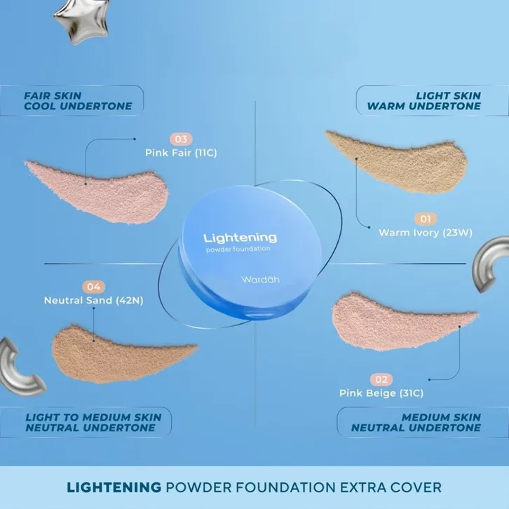 Wardah Lightening Powder Foundation All Skin Types Extra Cover 10g - Bedak Padat | SPF 22 | Merah Jingga Official
