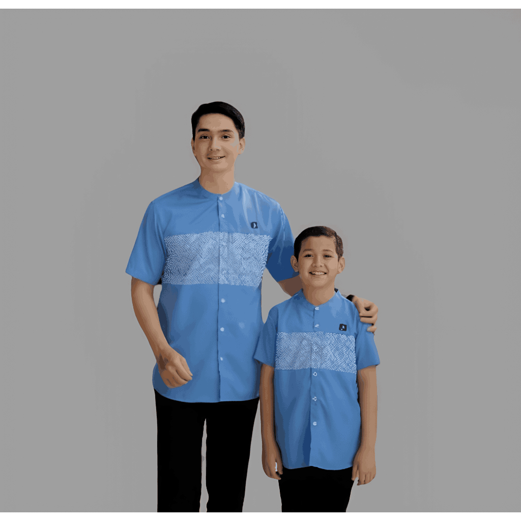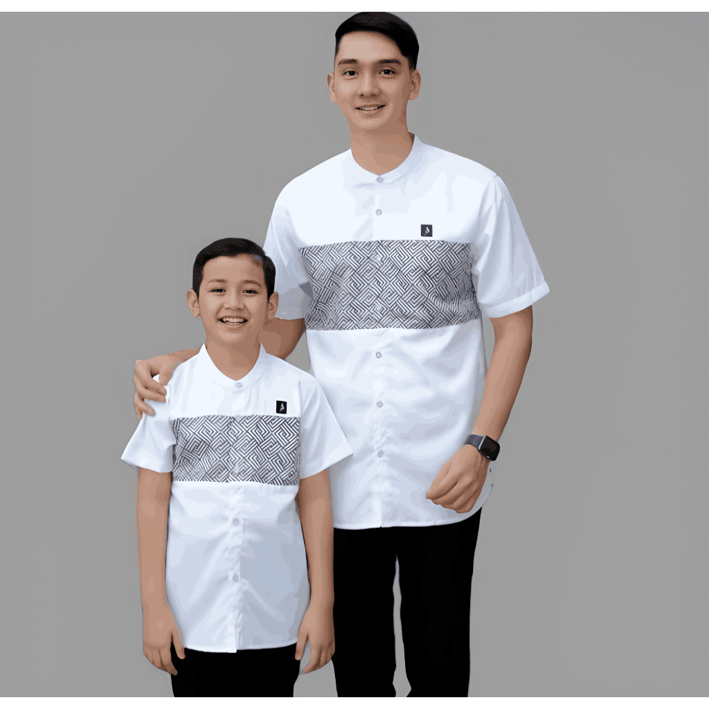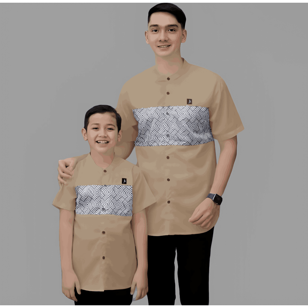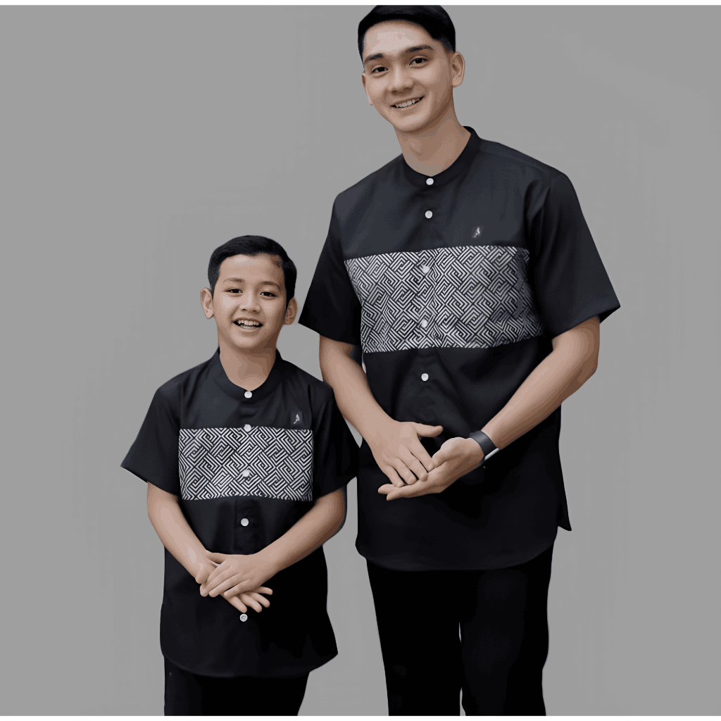 Baju Koko Lengan Pendek Couple Ayah Dan Anak Umur 3-12 Tahun Motif Kombinasi Warna Hitam Couple Ayah Dan Anak Premium Warna Hitam