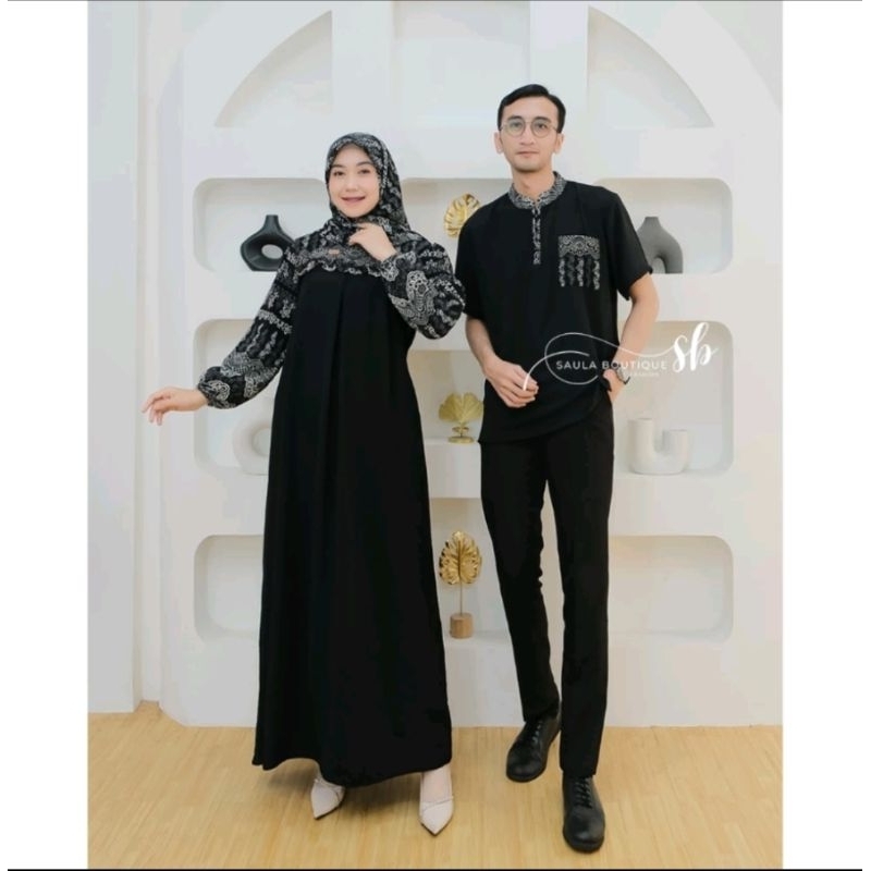 Ready Couple Set Gamis Kanaya dan Kemeja Keenan (PO Pengkuningan) Bahan Cringkle mix Ceruty Printing Motif Terlaris- Baju Couple Lebaran - Sarimbit Set Gamis dan Koko - Dress Couple Free Hijab