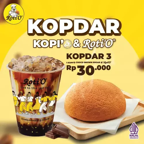 5 Roti'O, 10 Roti'O, KOPDAR 1 (Kopi'O Brown Sugar & Roti'O), KOPDAR 2 (Kopi'O Regal & Roti'O), KOPDAR 3 (Choco Brown Sugar & Roti'O), KOPDAR 4 (Kopi'O Hazelnut & Roti'O), KOPDAR 5 (Butterscotch Latte & Roti'O), KOPDAR 8 (Mix 3 Kopi'O Series), Kopi Roti'O Brown Sugar 500ml, Kopi Roti'O Creamy Vanilla 500ml, Kopi Roti'O Hazelnut 500ml, Choco Brown Sugar 500ml, Roti'O, Mini Pastry Chocolate, Mini Pastry Tuna, Mini Pastry Beef, Mini Pastry Chicken, Mini Pastry Banana Choco Cheese, Mini Pastry Cheese, Chicken Curry, Mini Pastry Martabak Croissant, Crombo'O Choco Peanut, Crombo'O Dark Choco, Lychee Green Tea 500Ml, Roti'O Goodie Bag, Kopi Roti'O Brown Sugar, Kopi Roti'O Regal, Kopi Roti'O Hazelnut, Choco Brown Sugar, Butterscotch Latte, Iced Black Tea, Iced Lemon Tea, Iced Lychee Tea, Iced Americano, Iced Cappuccino, Ice Chocolate, Ice Chocolate Hazelnut, Buy Kopi Roti'O Brown Sugar 500ml, GET 1 Free Roti